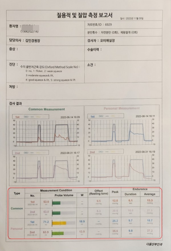 질수축력 : 145% 향상 12.5mmHg → 30.6mmHg
