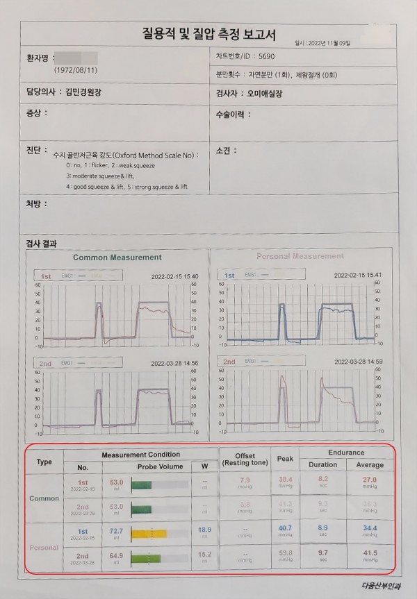 질수축력 : 46% 향상 40.7mmHg → 59.8mmHg