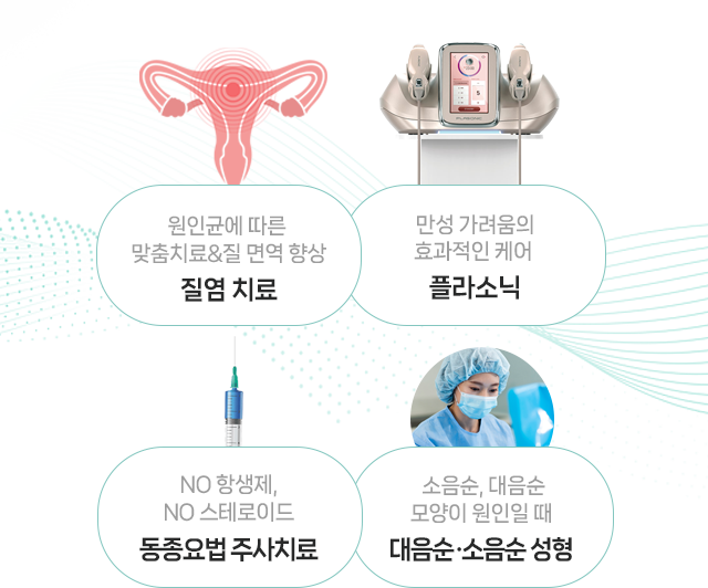 면역저하, 염증, 날씨, 소음순 비대, 대음순 변형 등의 이유로